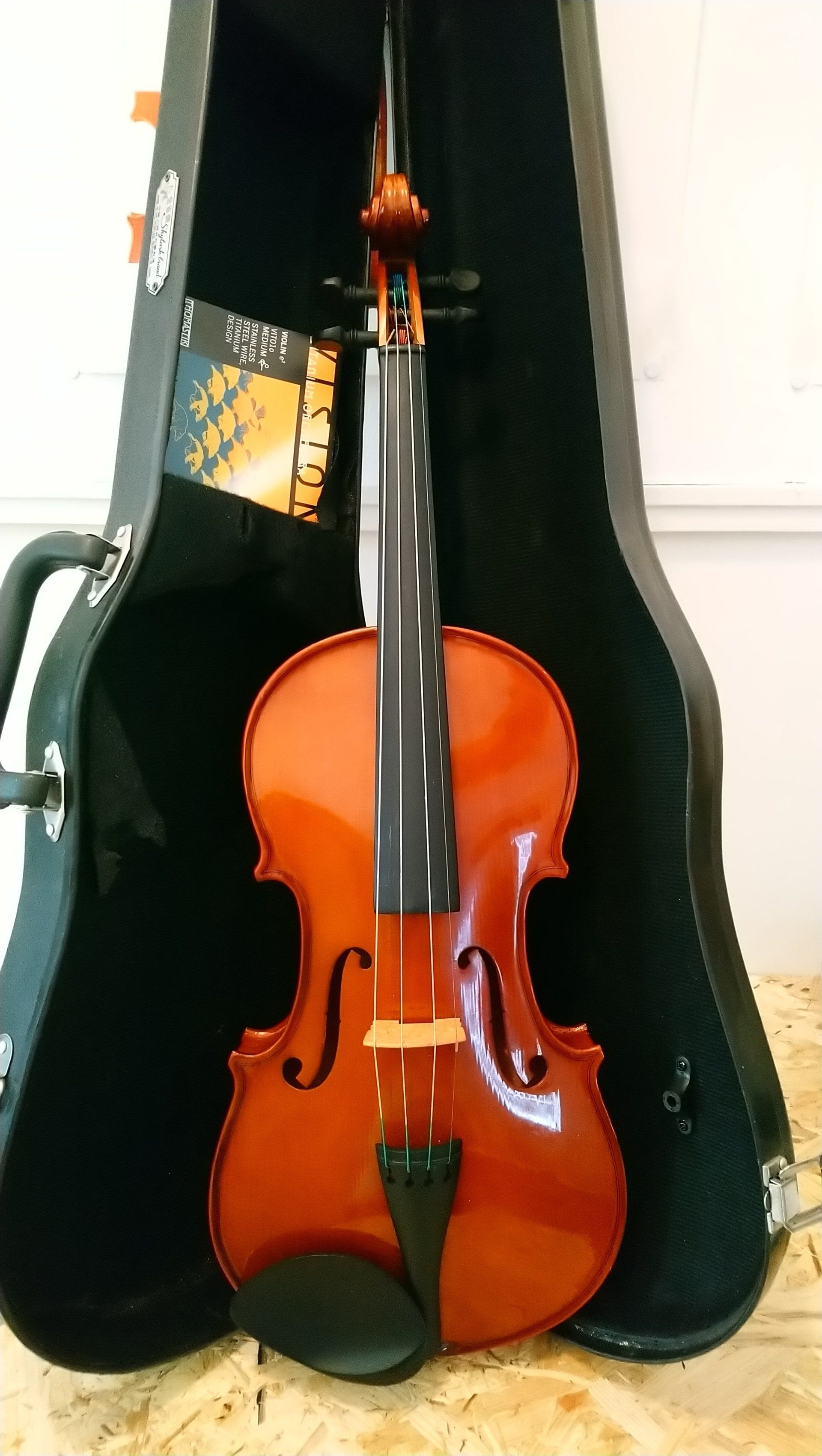 Dazu haben sie die Möglichkeit eines von momentan 5 Leihinstrumenten über die Dauer von 4 Wochen mit nach Hause zu nehmen. Bögen, Schulterstützen und Koffer inklusive.
